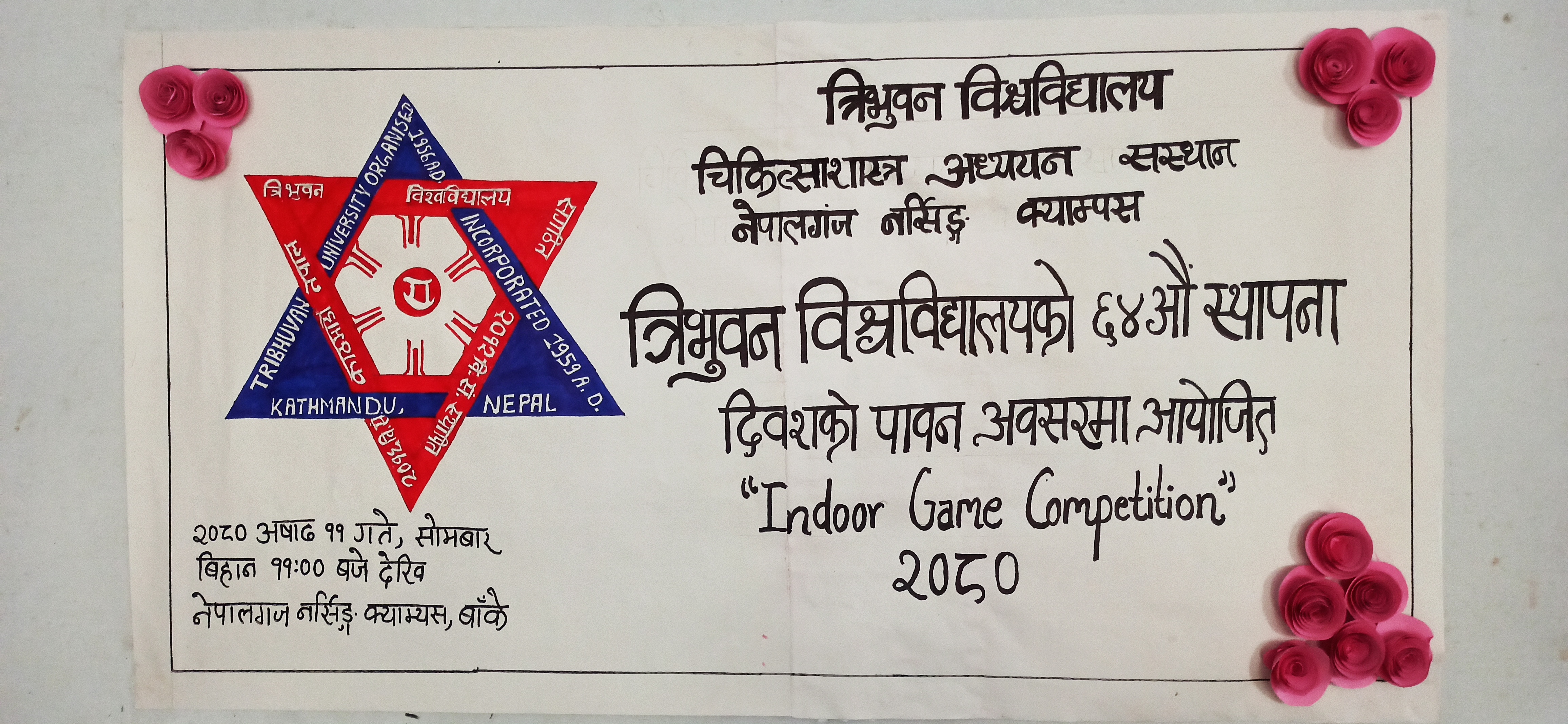 नेपालगंज नर्सिङ्ग क्याम्पस, बाँकेले Indoor Game प्रतियोगिता र क्याम्पस परिसरमा वृक्षारोपण गरी त्रिभुवन विश्वविद्यालयको ६४ औँ स्थापना दिवस भव्यरुपमा मनाएको छ |