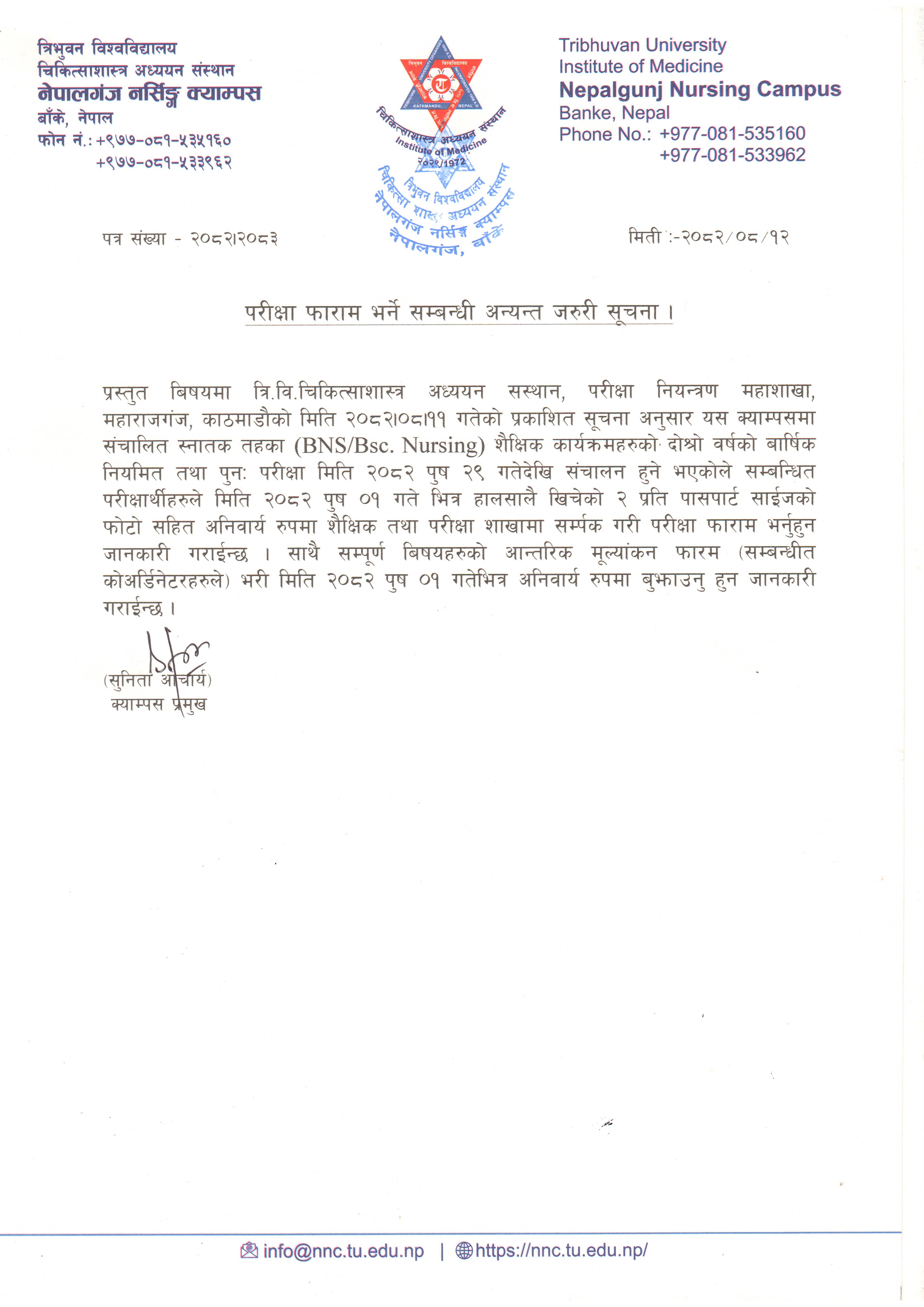 परीक्षा फाराम भर्ने सम्बधी अत्यन्त जरुरी सूचना |