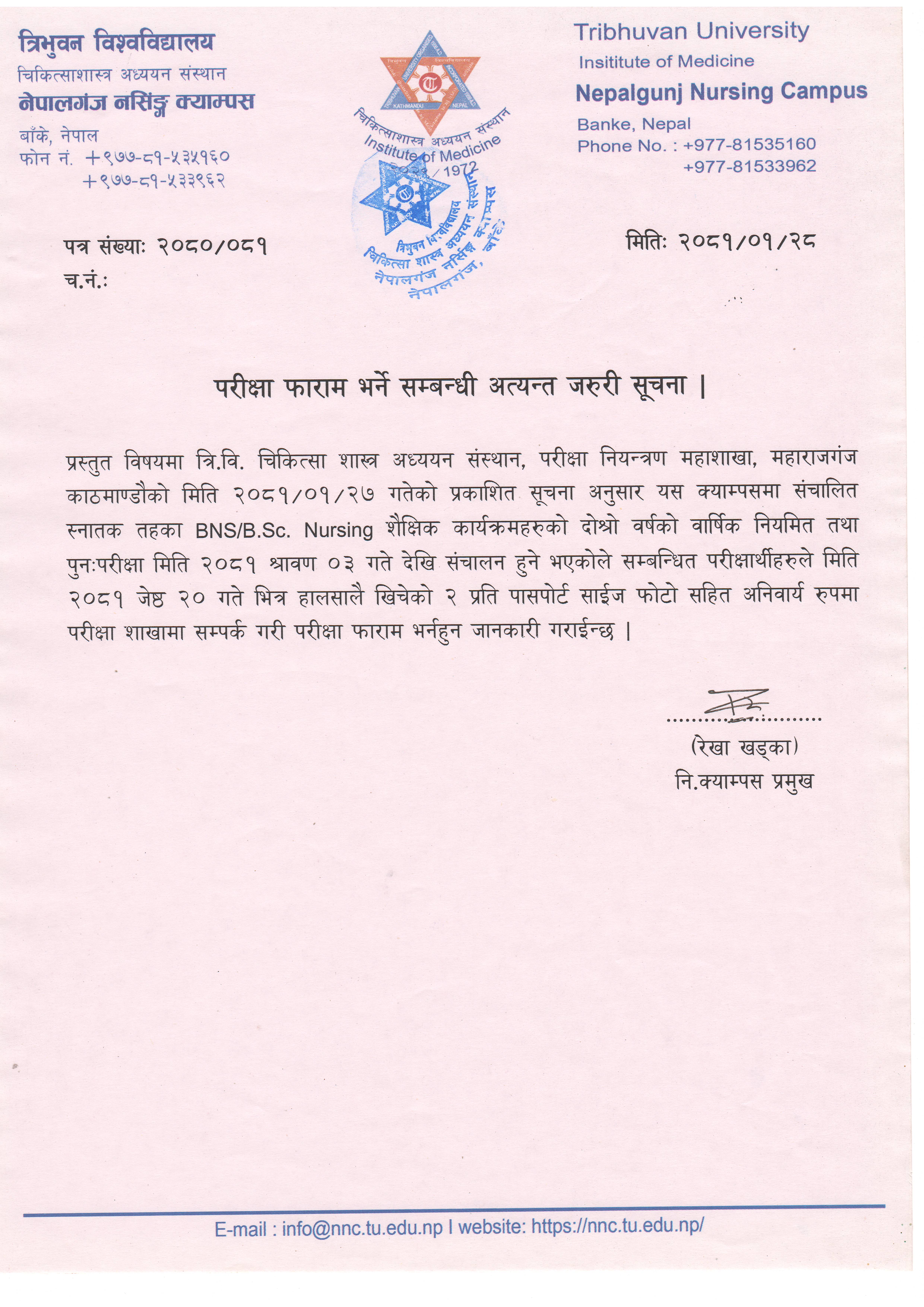 परीक्षा फाराम भर्ने सम्बन्धी अत्यन्त जरुरी सूचना |